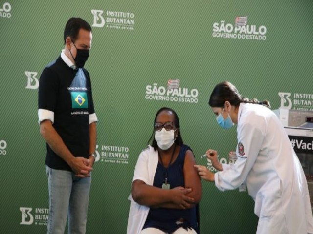 A primeira pessoa a ser imunizada foi a enfermeira Monica Calazans, 54, que trabalha na UTI do Instituto de Infectologia Emílio Ribas, em São Paulo. Com obesidade, hipertensão e diabetes, ela faz parte do grupo de risco. Calazans foi vacinado pela enfermeira Jéssica Pires de Camargo, 30. A aplicação da vacina ocorreu em caráter simbólico, ao lado do governador João Doria, fiador da Coronavac no país.